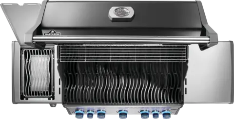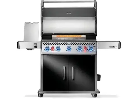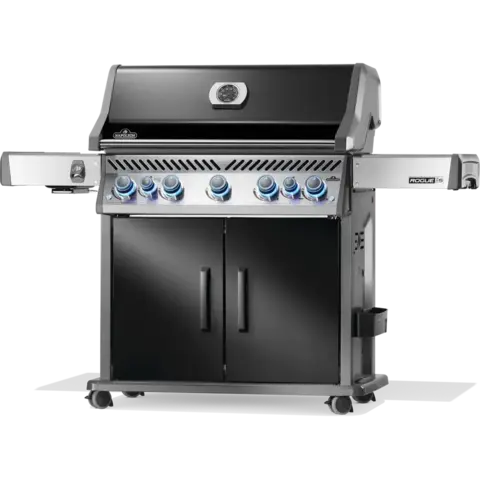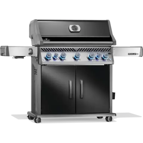 Гриль Napoleon Rogue PRO-S 625 (черный) — идеальный выбор для опытного любителя гриллинга. Изготовлен из жаропрочной стали с очагом из литого алюминия, он обеспечивает долговечность и отличный внешний вид. С его помощью вы сможете приготовить разнообразные блюда — жарить, запекать, тушить, варить, выпекать и обжаривать. Благодаря основной поверхности размером 88х45 см и вспомогательной решетке для подогрева размером 87х16 см у вас будет достаточно места для готовки больших порций пищи. Газовый гриль оснащен пятью основными горелками из нержавеющей стали, задней горелкой для вертела и боковой инфракрасной горелкой SIZZLE ZONE™ размером 24×37 см.