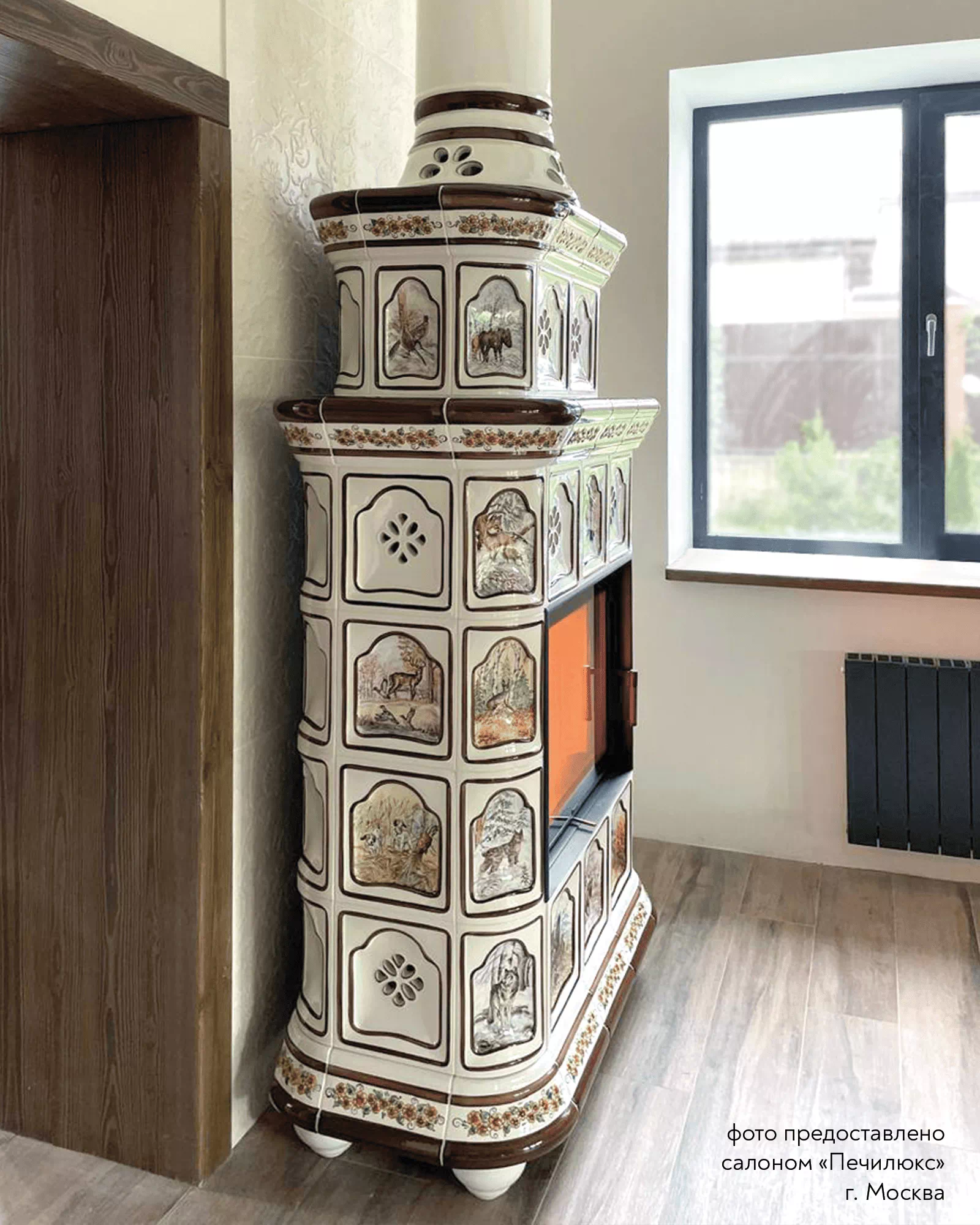 Шелкография завершает обрамление очага, гармонируя с внутренним убранством топочной части.